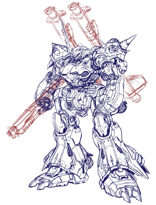 ラフが出来た~。グフ-フライトタイプカスタム。 複座型重爆撃機みたいな。バックパックにはエールストライクガンダムみたいなスラスターを背負ってたり。 #グフ #ガンダム #グフフライトタイプ #メカデザイン #メカ #モビルスーツアレンジ #ファンアート #重爆撃モビルスーツ #複座型