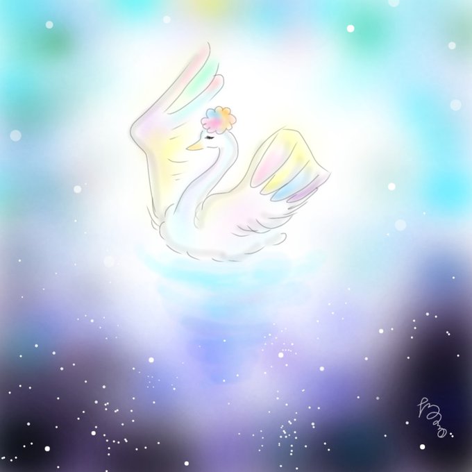 🐑⭐️☁️🌈🦢⭐️🌠 そ う だ ・・ モフ曜日だ #モフ曜日なのでモフ画像を貼る #モフモフ #イラスト #オリジナルイラスト #一次創作 #鳥 #動物イラスト #オリキャラ #絵描きさんと繋がりたい 星空ゆらゆら ほんのり 虹色 スワン 🦢🌠⭐️✨🌈☁️⭐️