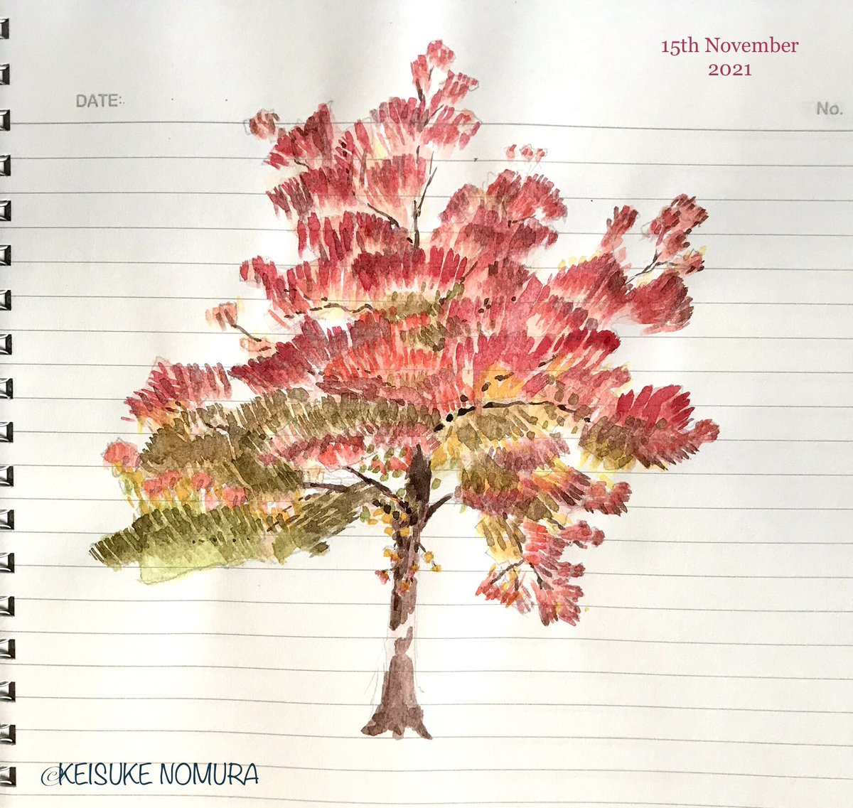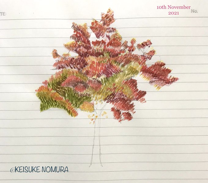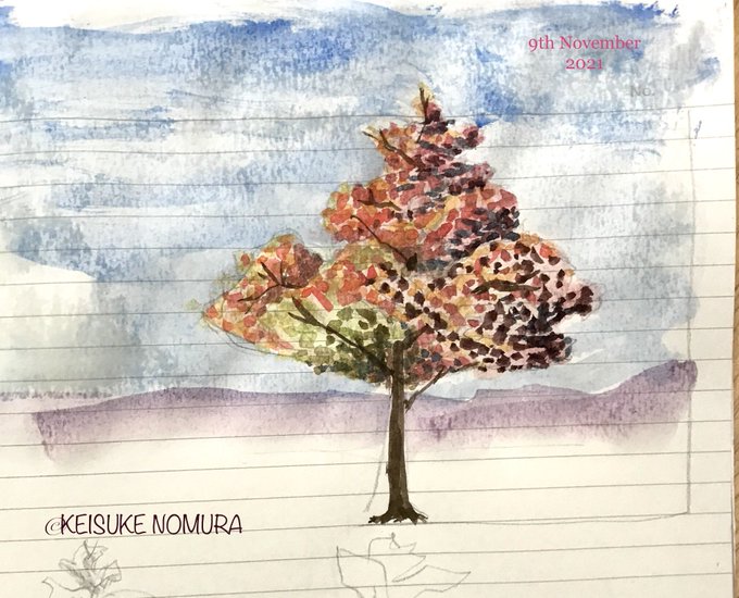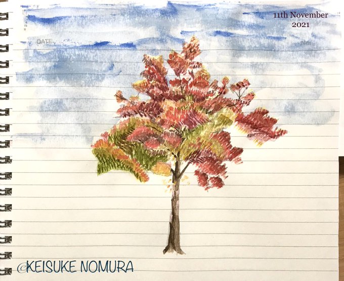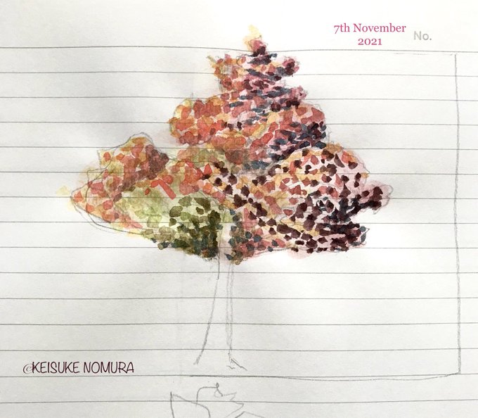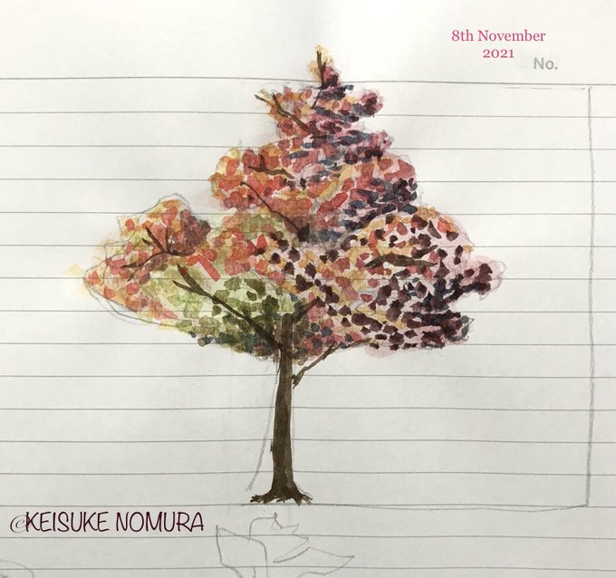 #Watercolor #painting a #tree Details of work in progress. Third wash #maple #Autumn #木 #モミジバフウ #nature のある #landscape #風景 #lightanddark #DALERROWNEY #水彩画 #Watercolor #art #painting #artontwitter #pencilsketch #artlover #japan #monaco #paris #nyc twitter.com/keisukenomu/…