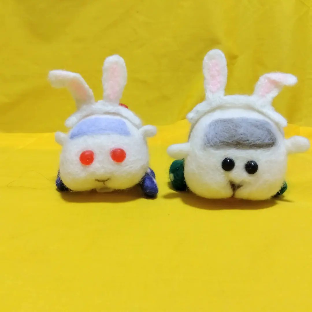 ぷいパズのうさみみ救急ちゃんが、かわいすぎたので、うさみみ作っちゃた。 シロモちゃんも救急ちゃんもうさみみ似合いすぎるねえ🐰🎑 #ぷいぷいモルカー #シロモちゃん #救急モルカー #モルカー作ってみた #モルカーファンアート