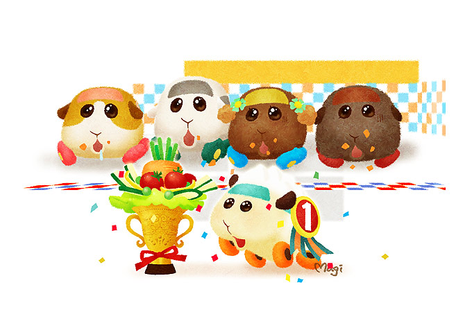 #モルカー5話ここ好き とぼとぼとゴールしてから飛び跳ねて喜ぶアビーちゃんまでの流れ 自分だけスタート切れないわニンジン食べられないわでとても辛かったね、アビーちゃん… それなのにトロフィーのお野菜をみんなに分け与える懐の深さよ…やはりヒーローの素質がある! ⬇は妄想絵です