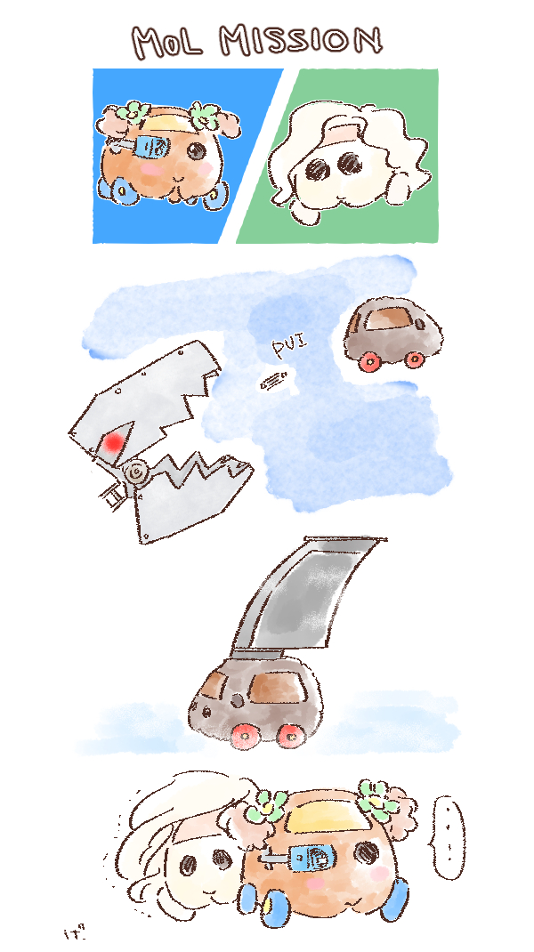 チョコ「トレモルは私が守るプイ❗️」 トレモル「(キュン……❤️)」 (イメージ) ※画像は再投稿 #モルカーファンアート #チョコ #トレジャーモルカー #黄金モルカー #イラスト #色鉛筆画 #モルカー8話ここ好き