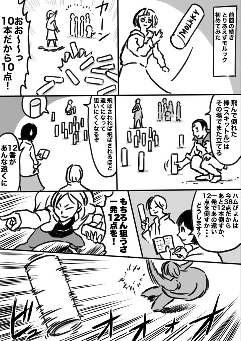「物投げるの好きなハルマキが謎の競技”モルック”した話!」 モルック編その1 なかなかシンプルでいて奥深いスポーツなので子供でも楽しめるな〜と思いました🤗 ↓ブログ「もみあげカワウソのマンガな話」 harumaki-manga-energy.com #漫画が読めるハッシュタグ #漫画 #創作漫画 #モルック
