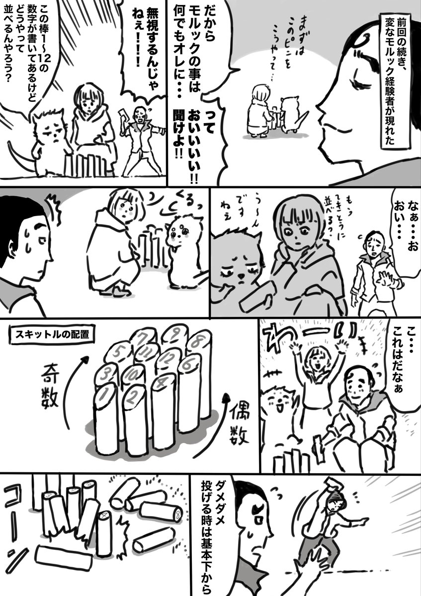 「謎の競技”モルック”やってたら謎の男現れた話!」 モルック編その2 なかなかルール説明に行けなくてすいません😅 ↓ブログ「もみあげカワウソのマンガな話」 harumaki-manga-energy.com #漫画が読めるハッシュタグ #漫画 #創作漫画 #モルック