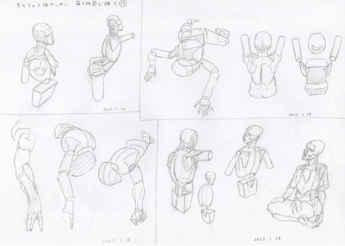 【成長記録31日目】 最近モルフォ人体デッサンの『箱と円筒で描く』を買ったので、勉強がてら模写練開始しました✎☡ 1冊丸ごと模写頑張ります!! #イラスト練習 #イラスト成長記録 #絵描きさんと繋がりたい #イラスト好きと繋がりたい #模写 #モルフォ人体デッサン