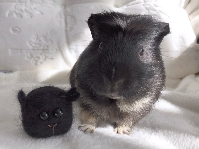 くろまる と仲間たち❣️ そっぽ向いちゃった😝 #モルモット #小動物 #guineapig #羊毛フェルト #モルカー #仲間 #モルモット好きと繋がりたい #くろまる・うしまる・ちゃまるの日常