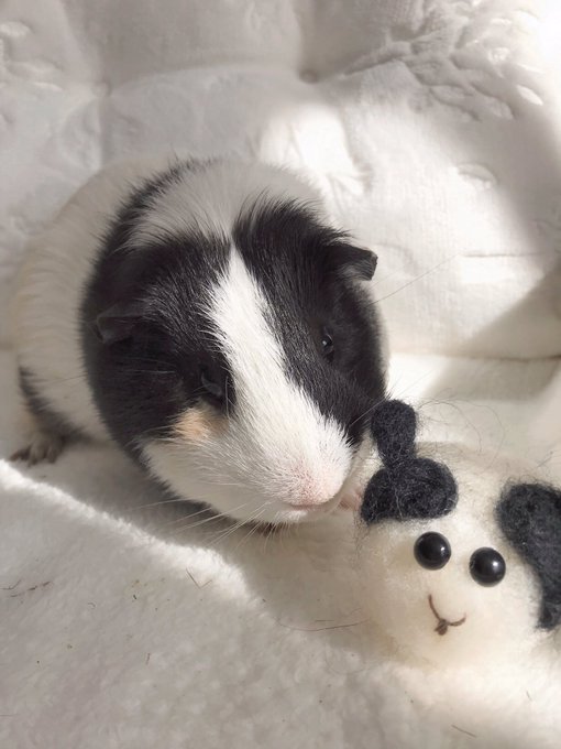 🐮うしまる と仲間たち❣️ 僕はカメラ目線😆 #モルモット #小動物 #guineapig #羊毛フェルト #モルカー #カメラ目線 #モルモット好きと繋がりたい #くろまる・うしまる・ちゃまるの日常