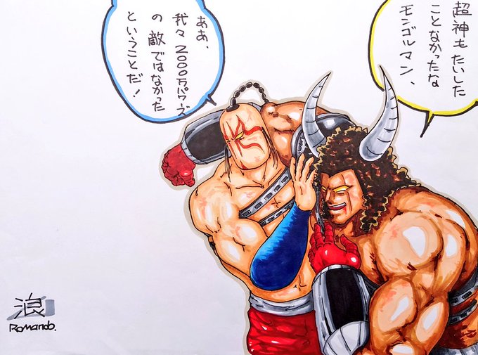 これは昨年の牛様の生誕祭に描いたヤツですね、 懐かし。 2000万パワーズの復活を期待してたんですが、このシリーズでは出番は無さそうで残念。。。😢 新作は明日✍️ 6月9日は。。。 #バッファローマン生誕祭 #モンゴルマン #2000万パワーズ #キン肉マンアニメ化 #イラスト