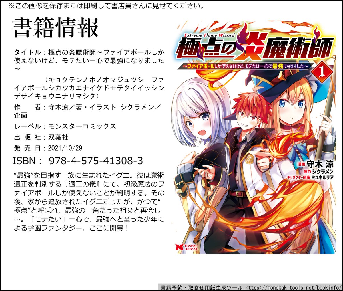【単行本のお知らせ】 コミカライズ連載中の 「極点の炎魔術師~ファイアボールしか使えないけど、モテたい一心で最強になりました~①」 10月29日発売です! とらのあな様、ゲーマーズ様では 特典の描きおろしブロマイドもあります! よろしくおねがいします! #モンスターコミックス