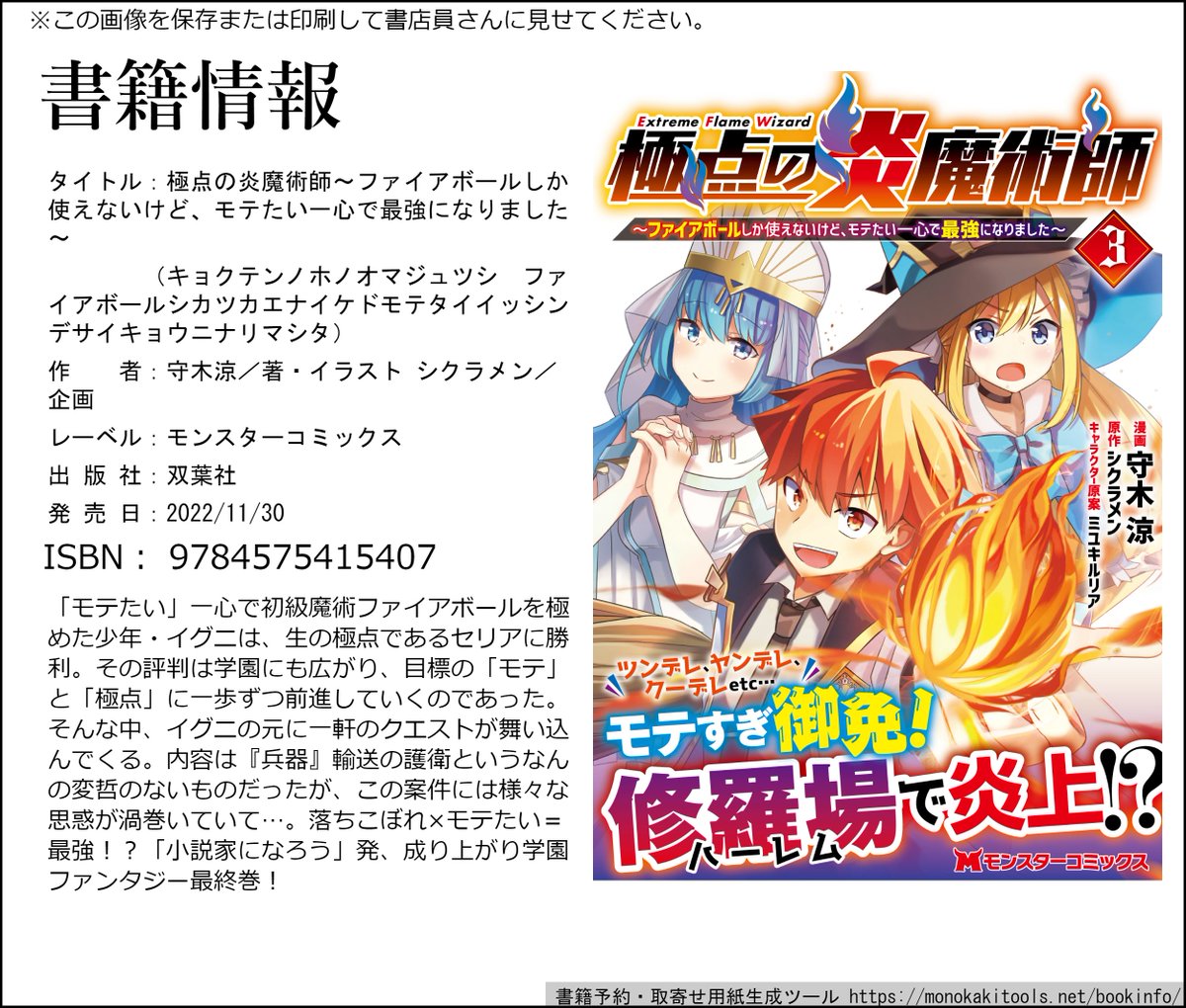 【🔥単行本のお知らせ🔥】 コミカライズ 「極点の炎魔術師~ファイアボールしか使えないけど、モテたい一心で最強になりました~」 最終巻 11月29日発売! 今回は表紙裏にギミックが…? 紙&電子どちらもありますので よろしくおねがいします! futabasha.co.jp/book/978457541… #モンスターコミックス