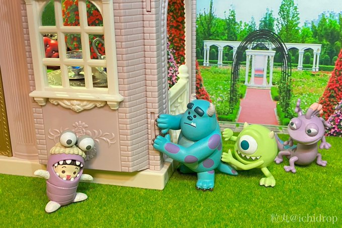 昨日の自分のツイートを少し違う形で実現したくなり、撮影したフィギュア写真で漫画を作ってみた。 指がプニプニだから缶コーヒーを自力で開けられないランドールは可愛い。 #モンスターズ・インク #オモ写 twitter.com/ichidrop/sta…