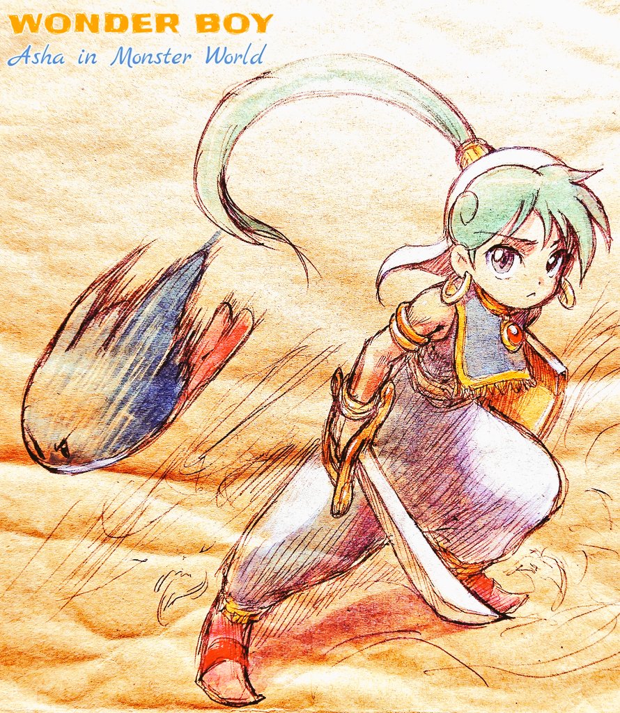 「ワンダーボーイ アルティメットコレクション」が出るらしいのでリメイク版が出たときに記念で描いたアーシャ&ペペログゥ再掲! #モンスターワールド twitter.com/famitsu/status…