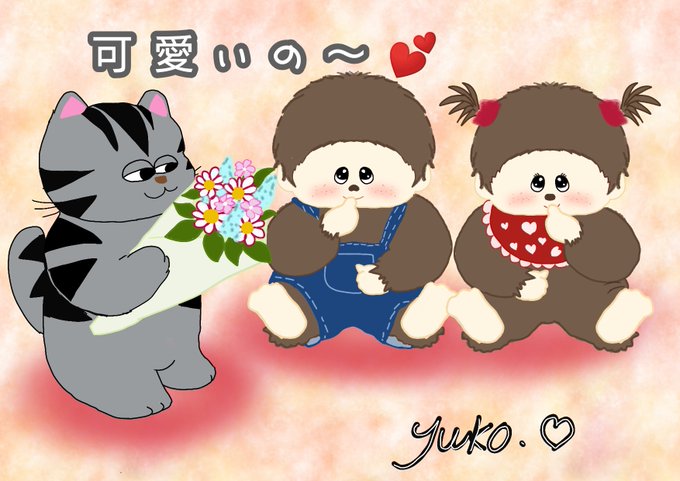 おはようございます!! (#モンチッチの日) ことら、ニワちゃんも、モンチッチポーズ! ん?何か違うって?😅 今日も素敵な水曜日を〜😆 #イラスト好きな人と繋がりたい #絵描きさんと繋がりたい #みんなで楽しむTwitter展覧会 #イラスト