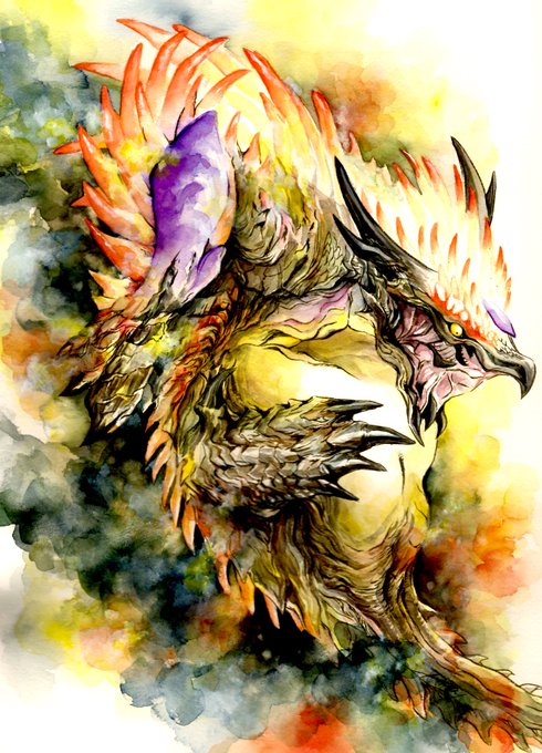筆ペンでマガイマガド描きました‼︎ モンハンライズ1周年おめでとう🎊‼︎ Magnamalo drawn with a brush pen Happy 1st anniversary ✨‼︎ #モンハンライズ1周年 #MHRise #art #drawing #illustration