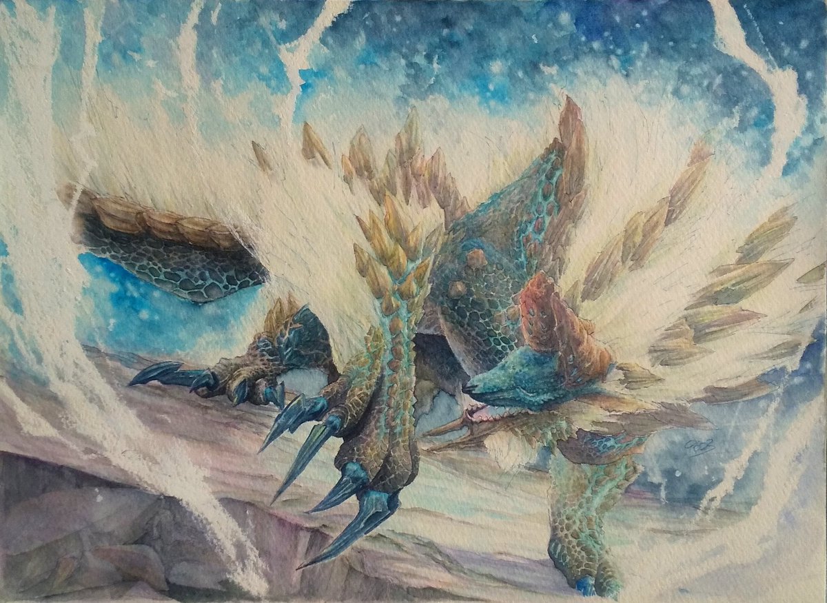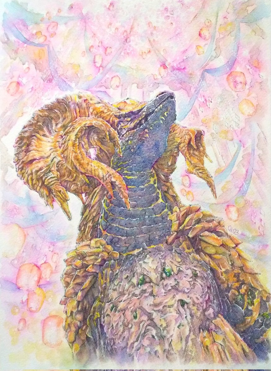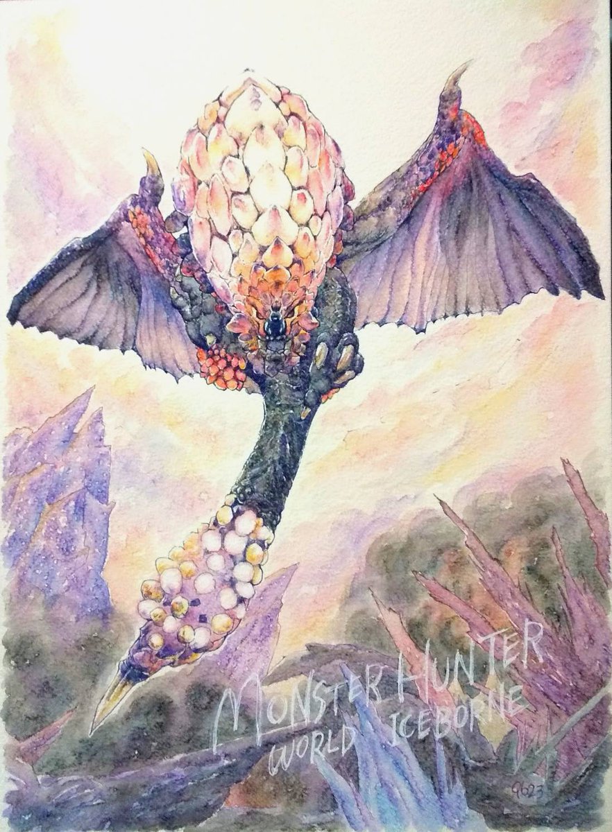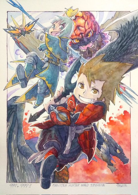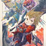 モンハンのカンスト記念で、イラストを描きました‼️おのおの推し(?)も一緒に✨ でも。これ。もう少し手を加えようと思ってます。ぇ(笑) #モンハンワールドアイスボーン #イラスト #カンスト記念 まだモンハンもやりますけどね😃バゼが待ってるんでね。 かずさんありがとうございます‼️