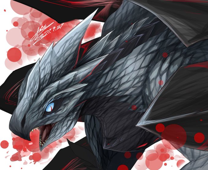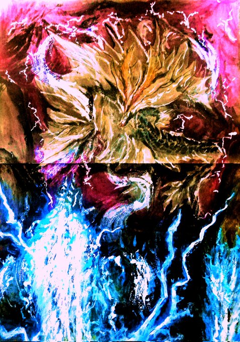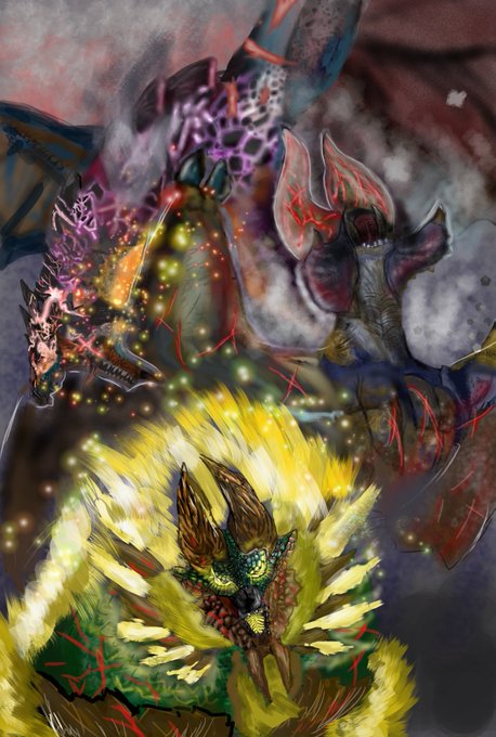 #モンハンストーリーズ2 #モンハン夏のイラコン ストーリーズ2で自分が序盤からクリア後までずっとお世話になったティガレックスを描きました。 当たれば会心の博打技であるヘビースピアーには何度も助けられたのを覚えてます。
