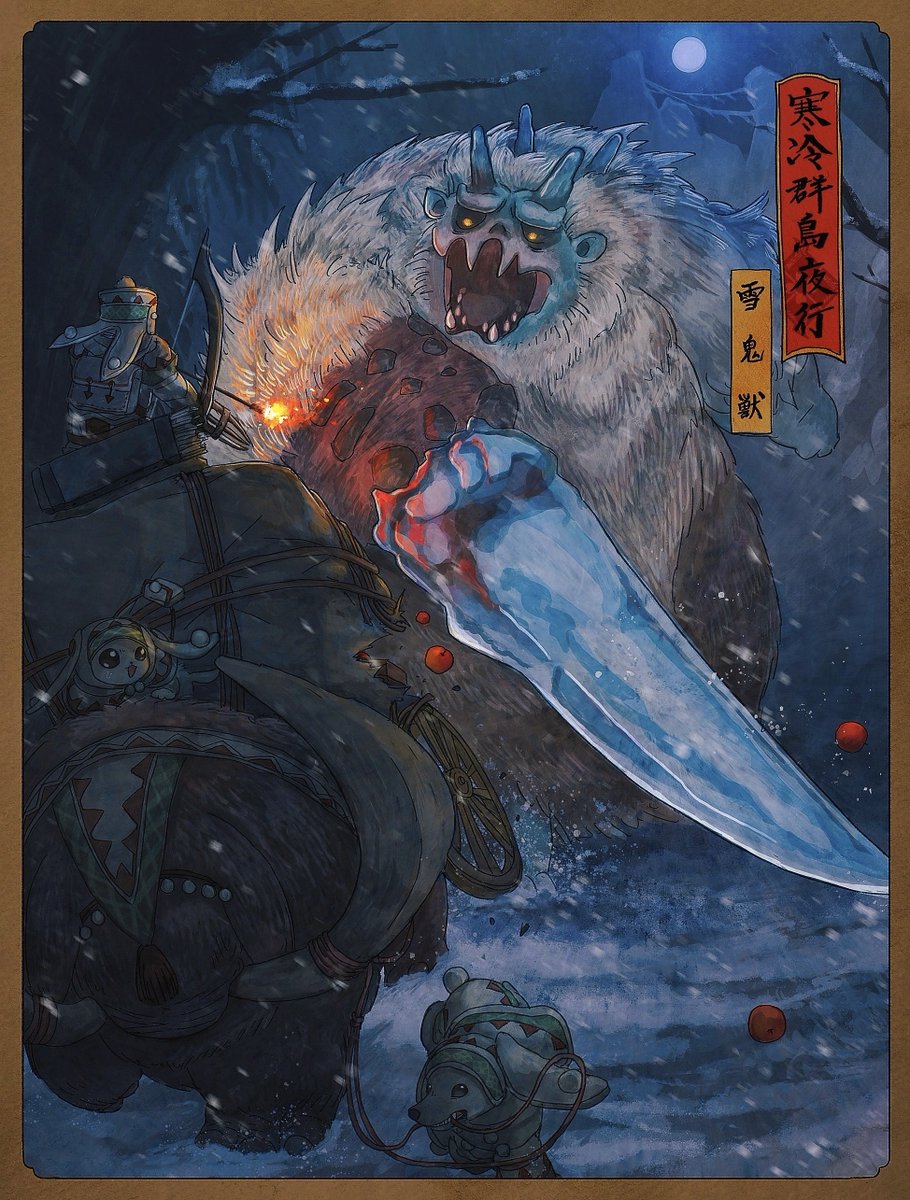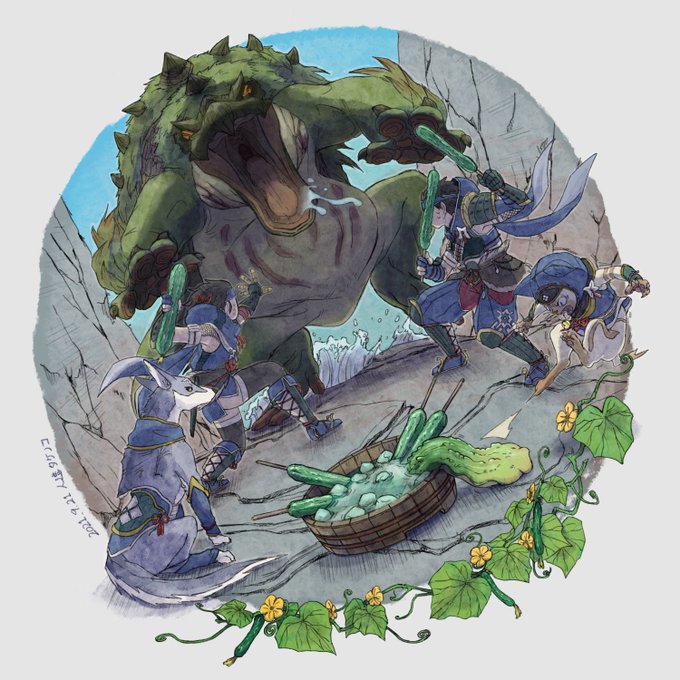 「寒冷群島でまた行方不明者が出たらしい。吹雪のせいか、それとも……ハンターさん、調べてきてくれねえか?」 ゴシャハギが大好きです #モンハン夏のイラコン #モンハンライズ #モンスターハンターライズ #MonsterHunter