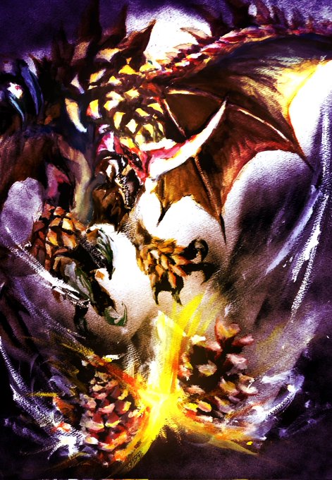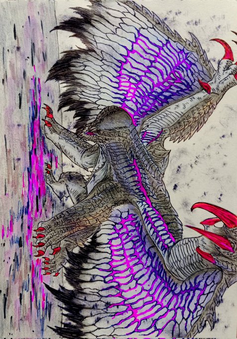 「叶うならいつか青い空を」 それはその生涯終わるまで暗い世界に棲む悲しき性を背負った竜。 #モンハン文化祭2022 の始まりじゃい!! 自分はアナログでゴアマガラを描きました!自分以外にも多くの方が作品を公開されています!是非お楽しみください! #イラスト #冬の創作クラスターフォロー祭り