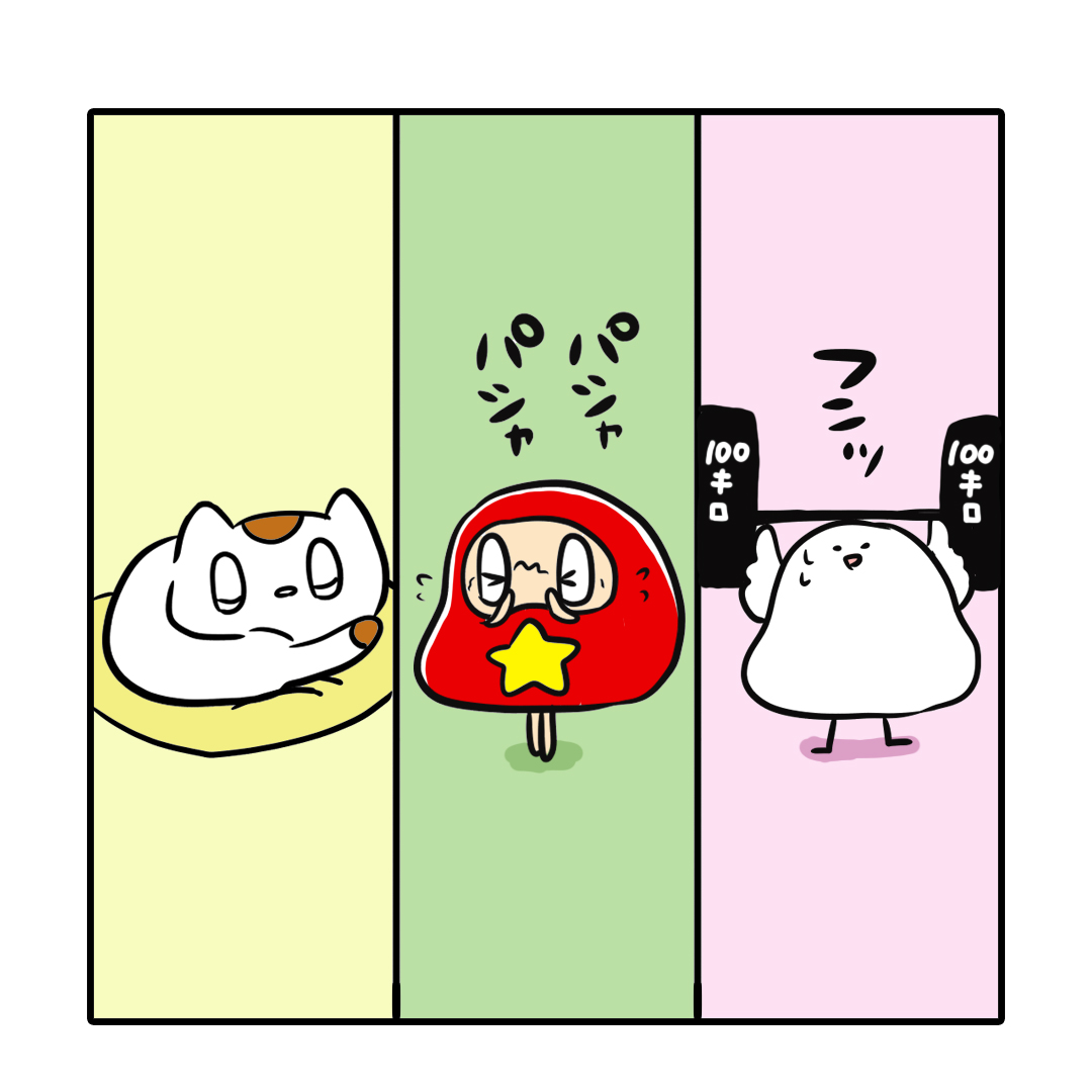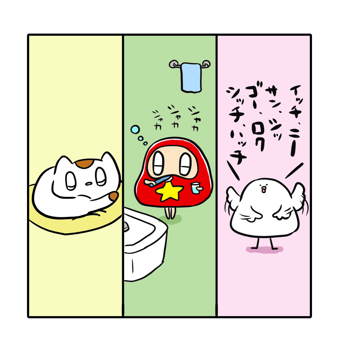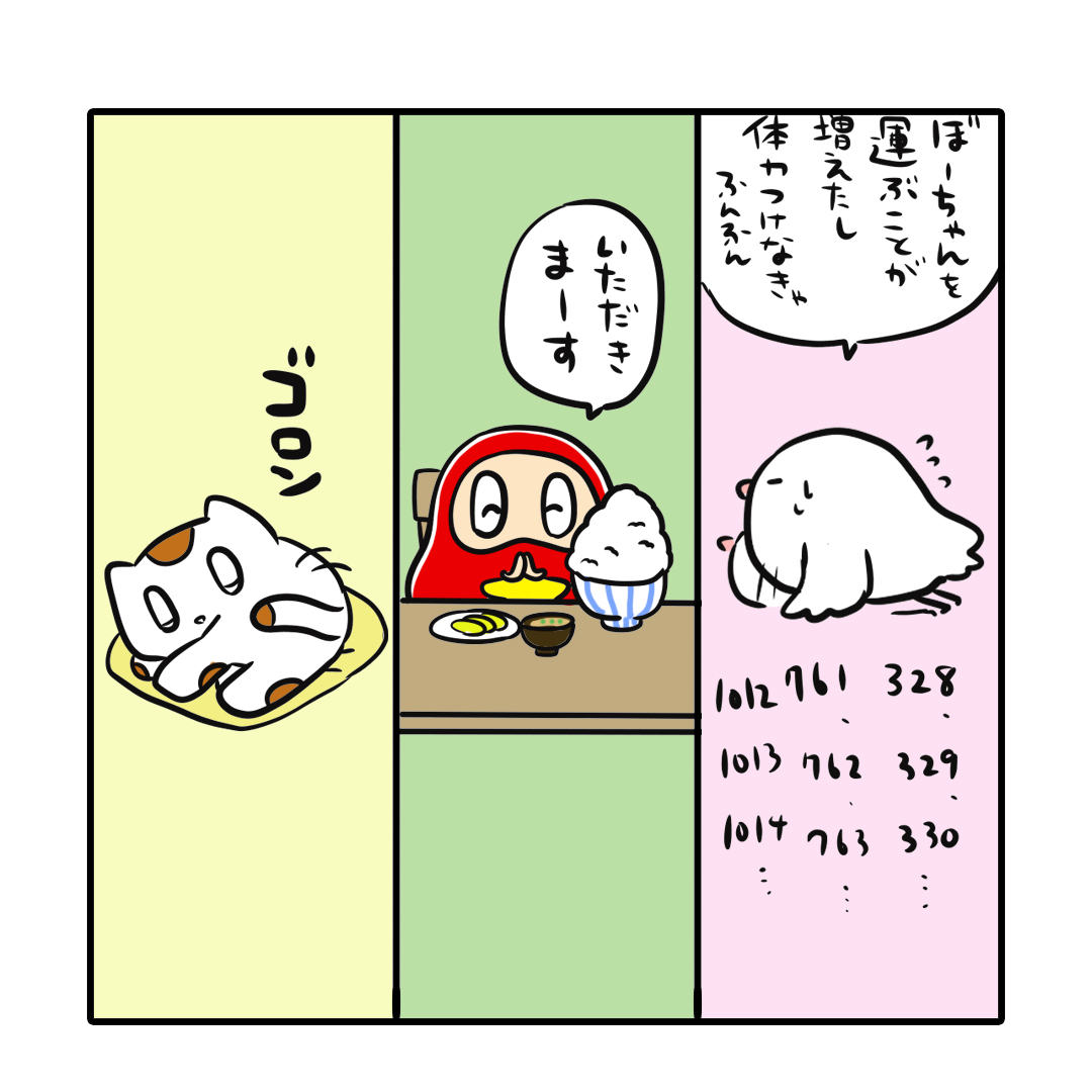 『ぼーちゃん、モーニングルーティーン💤🍚💪』 朝の過ごし方は三者三様ですね。 #モーニングルーティーン #睡眠 #ご飯 #筋トレ #イラスト #ゆるいイラスト #ゆるかわイラスト #お絵かき #絵描きさんと繋がりたい #一日一絵 #4コマ漫画 #漫画 #漫画が読めるハッシュタグ