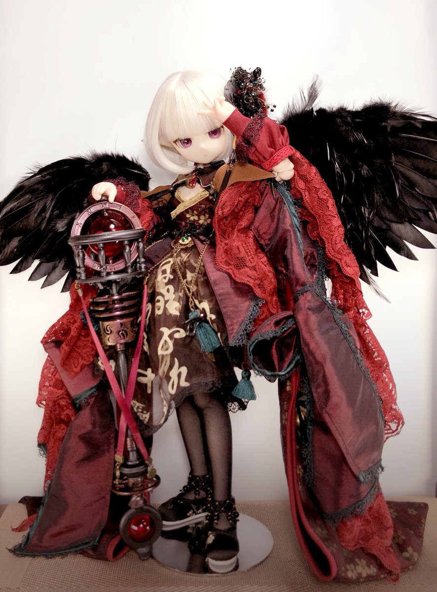 今回展示の際に沼の住人(@xcviiidcxxxix )様の杖も一緒に展示させていただきます!(許可を頂いてます) 私物なのでセットには含まれませんが時空を旅する子のイメージにピッタリなので展示にて一緒に楽しんでいただけますと幸いです🕰 #CALULU服 #モーリ魔道具工房 #アイコレプチ展III