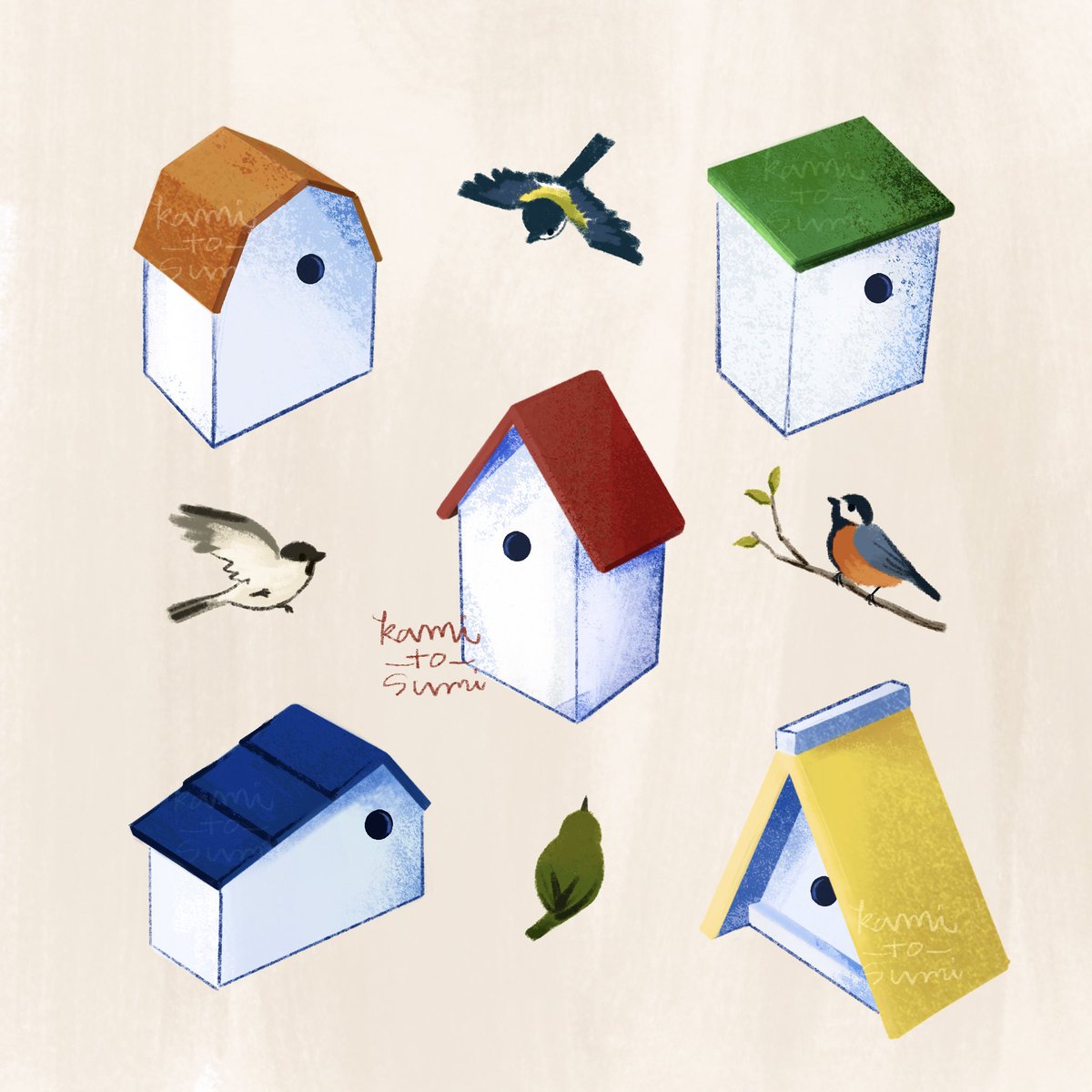 #inktober Day13 #roof もし小鳥だったら、どの屋根のおうちに住む?🏡 #inktober2021 #inktoberday13 #Inktober2021day13 #インクトーバー #イラスト #イラストレーター #illustrator #illustration #drawing #野鳥 #art #一日一絵 #dailydrawing #ヤマガラ #コガラ #メジロ #シジュウカラ