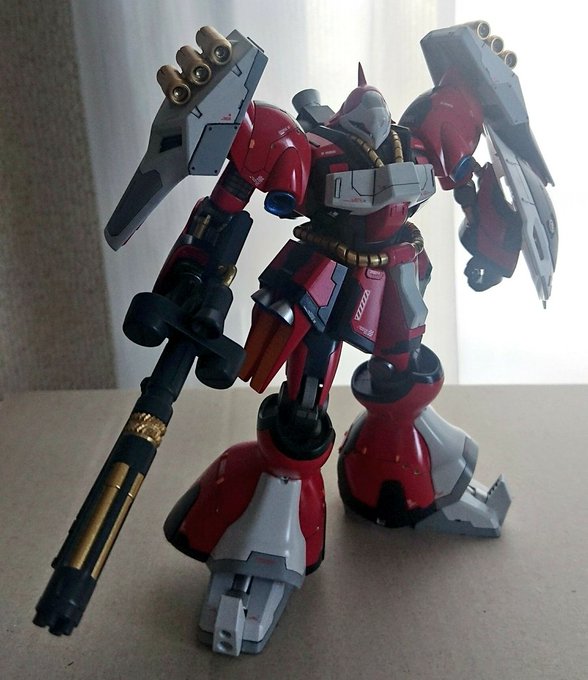 REヤクト・ドーガ完成しました。 お胸を左右5mmほど豊胸、首と足首と腰を延長。ずんぐりむっくり感を残しつつ若干スマートにしました。あと背中さみしかったのでプロペラントタンクを追加。 1/144では味わえない圧倒的な存在感があります。 #ヤクト・ドーガ #ガンプラ #ガンプラ好きと繋がりたい