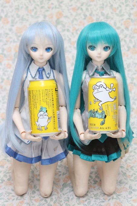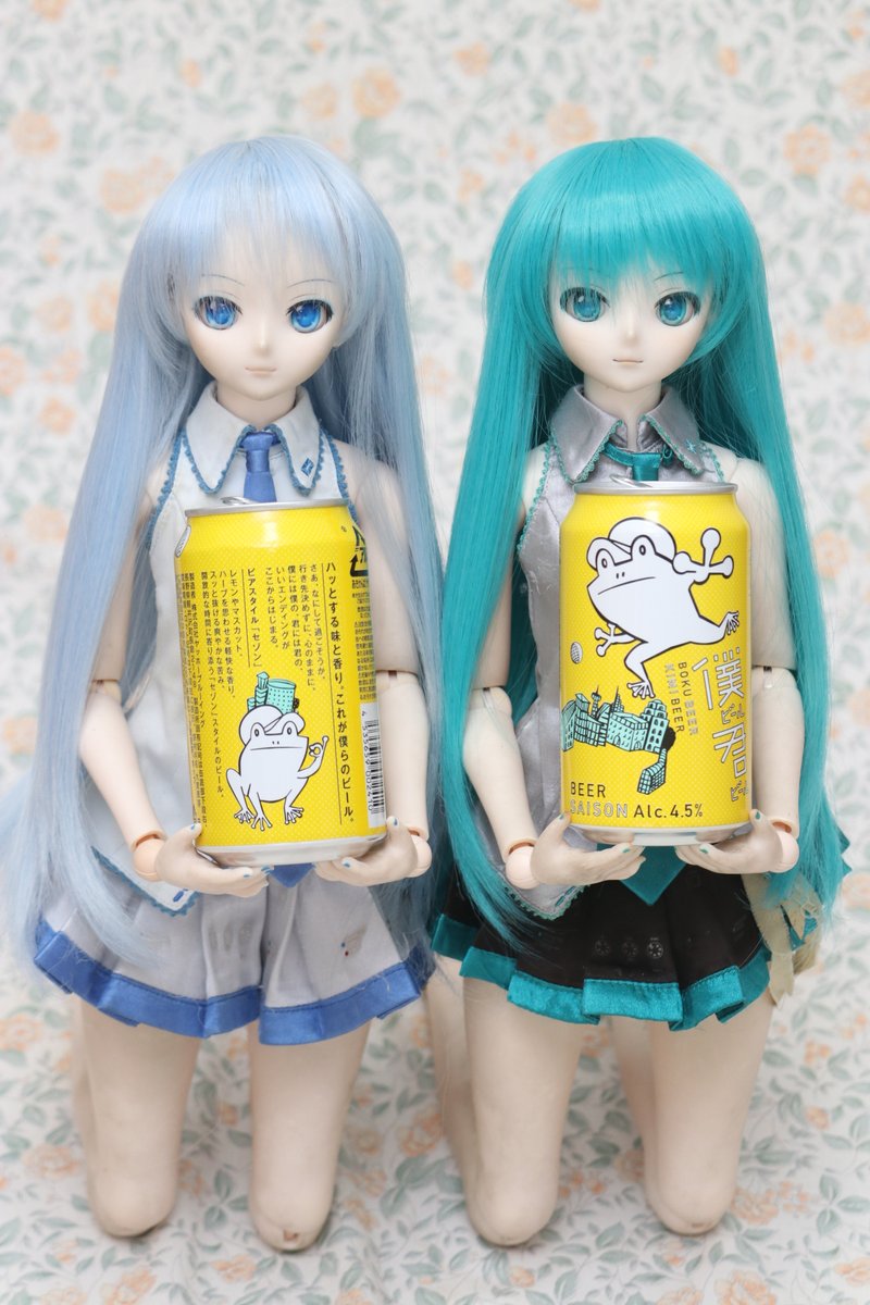 #深夜の初音ミク撮影60分一本勝負 5/16のお題【かえる】#深夜のドール撮影60分一本勝負 5/16のお題【フリー】#僕ビール君ビール #ヤッホーブルーイング ミク・ユキ「かえるビール!、僕ビール君ビール、ヤッホーブルーイングさんのビールはどれも美味しですねー」