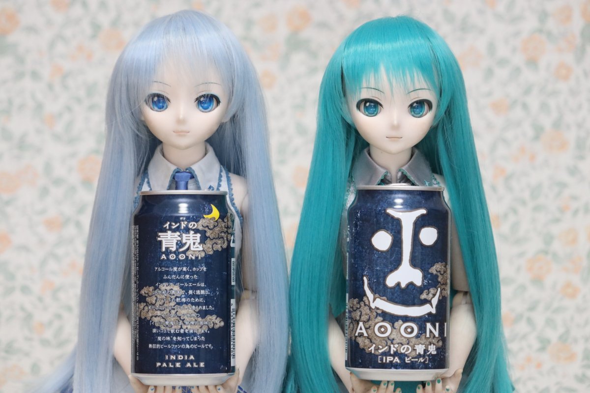 #深夜の初音ミク撮影60分一本勝負 6/17のお題【夢中】#深夜のドール撮影60分一本勝負 6/17のお題【フリー】 #ヤッホーブルーイング #インドの青鬼 #僕ビール君ビール ミク・ユキ「ヤッホーブルーイングさんの、クラフトビールに夢中!」