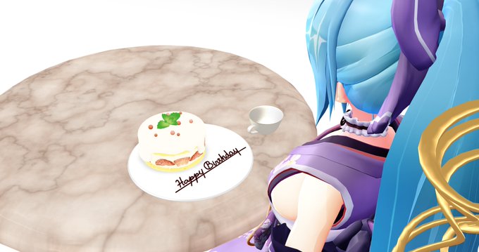 #イオリの森美術館 #ヤマトイオリは誕生日 <(C)Appland, Inc.> 誕生日ケーキ_ver1.1(azyazya様) ティーカップ&スプーン(ゼナ@光陰矢のごとP様) テーブルと椅子(MIZU様)