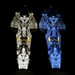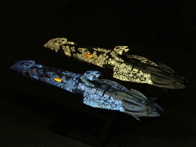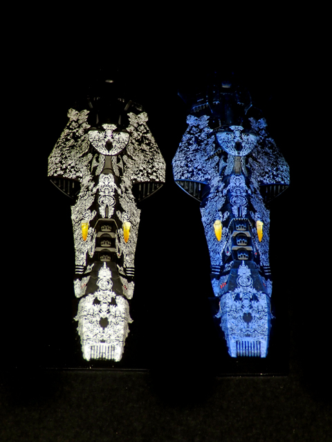 メカコレのゼルグート級をキット付属のデカールを使用して作りました。黒い装甲突入型は漆黒の闇に陶磁のような紋様が漂っているように、青い総統座乗艦デウスーラⅠ世は暗闇から紋様がぼわっと浮かび上がるようなイメージで仕上げました。#ヤマト2199 #ヤマト2022 #今月作ったプラモ晒そうぜ