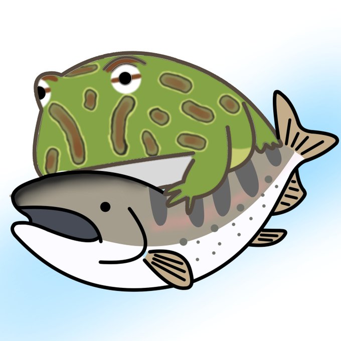 作品No.327 ヤマメさんに抱きついてしまったベルツノガエルさん ヤマメさんに抱きつくナガレタゴガエルさんならぬベルツノガエルなのでした。 #ベルツノガエル #ヤマメ #ナガレタゴガエル #frog #イラスト #illust #illustration #hornedfrog