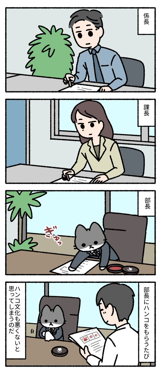 ハンコ文化(1/4) ―― 新連載スタート! pandania @pandania0 #ヤメコミ #4コマ漫画 ▼仕事辞めたい瞬間の4コマ漫画 tenshoku.mynavi.jp/knowhow/yameco…