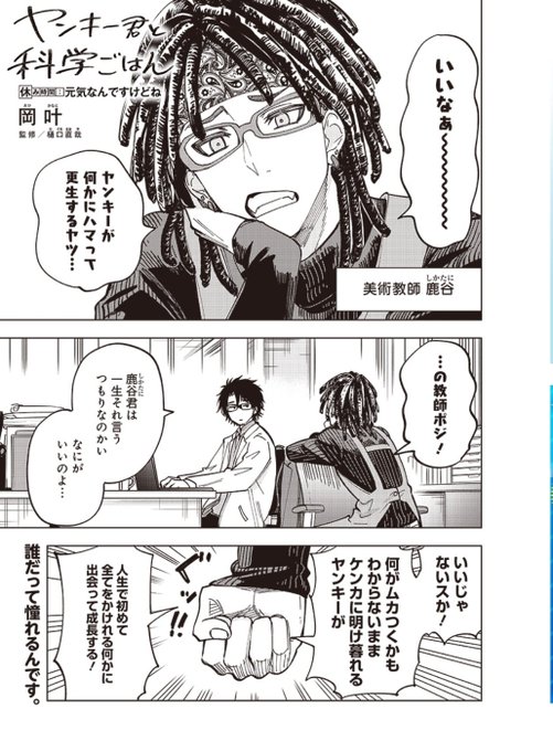 #ヤンキー君と科学ごはん 4話が更新されました! 新しい補習部屋を手に入れろの回です。様子のおかしい教師が数人出てきます。よろしくお願いします! 今回のコラムもとても面白い [第4話] ヤンキー君と科学ごはん - 岡 叶 | となりのヤングジャンプ tonarinoyj.jp/episode/316190…