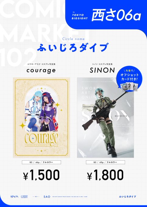 🌟【#C102 お品書き】ふいじろダイブ🌟 2日目西さ06aでSAOシノンとユウアス写真集頒布します! シノン写真集は当日先着でオフショットカードの特典用意しました! 当日はふいりちゃんとユウキ・アスナのコスプレして待ってます👀 よろしくお願いします〜! ❗️取り置きはリプかDM頂けると…! twitter.com/i/web/status/1…