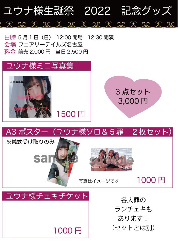 5/1(日) #ユウナ様生誕祭 会場▷八事フェアリーテイルズ 時間▷開場12:00/開演12:30 料金▷前売2000円/当日2500円 予約▷リプDM💌 🌹生誕記念グッズ himitsu-floris.booth.pm/item_lists/r1L… 🌹嫉妬曲お披露目記念グッズ himitsu-floris.booth.pm/item_lists/m7Y… (4/17〆) この日だけは世界一愛して〜!! 予約お待ちしています🐰
