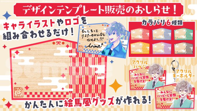 【🎍デザイン素材頒布のおしらせ】 絵馬風の「アクリルバッジ」または「アクリルキーホルダー」を作れるテンプレートを作成しました! DL▶︎︎ yukanote-shop.booth.pm/items/4409839 もちろん商用利用可能です!グッズ販売してください🥰規約はURL先にてご確認ください! #ユカシ作 #Vtuber素材 #VTuberAssets