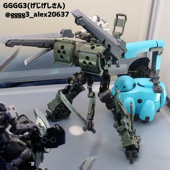 折角なので、完成させてはいたけどツイッターに上げてなかった物をまとめて撮影して参加します! ボルトレックス・ラース TAMOTSU スケアクロウ(フォレストカラー) エクスキューショナーBRIDE どれもいじってて楽しいキットですね! #ユニリバオフ2022W #ヘキサギア #メガミデバイス