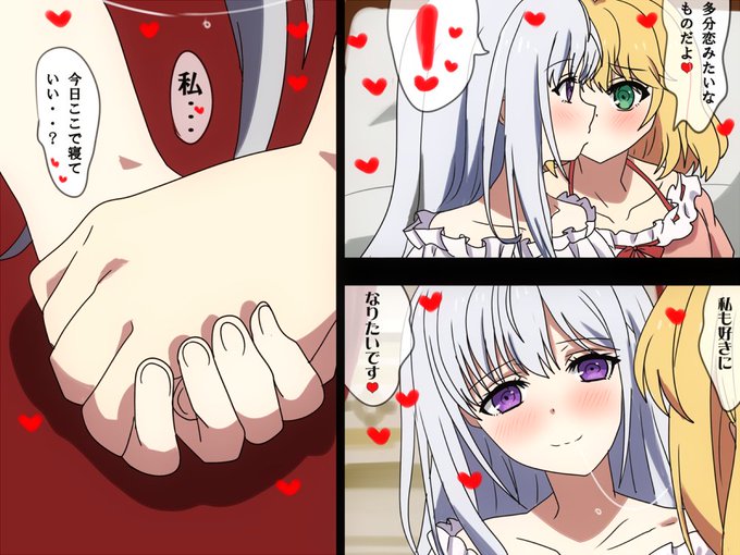 アニス♡初めての浮気☆Kiss!描いたよ #転生王女と天才令嬢の魔法革命 #アニスフィア・ウィン・パレッティア #ユフィリア・マゼンタ #レイニ・シアン #ユフィ #アニス #百合 #ユフィアニ