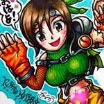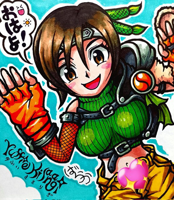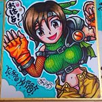 ミニ色紙に #FinalFantasyVII から #ユフィ さんを描きました(^o^) #ティファ と #エアリス 3人並べるといい感じ! #ファイナルファンタジー7 #おえかき #イラスト
