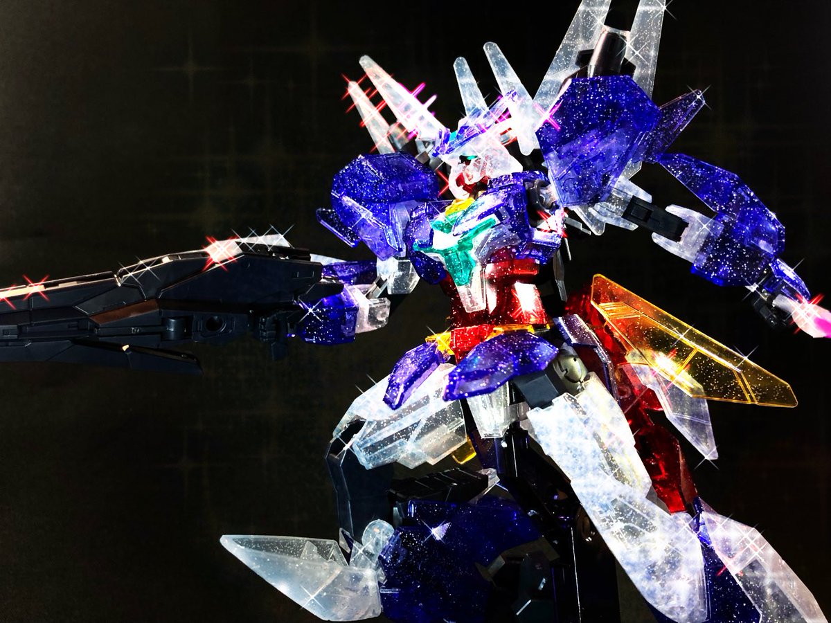 #楽しく玩具撮影会 テーマ「とりあえず、一枚」 全身クリアという事で、OP映像のシャンゼリオンっぽく輝かせてみました。 #ガンプラの画像貼るとRTされると聞いて #ユーラヴェンガンダム #ガンダムビルドダイバーズリライズ #ダイブイントゥディメンジョンクリア