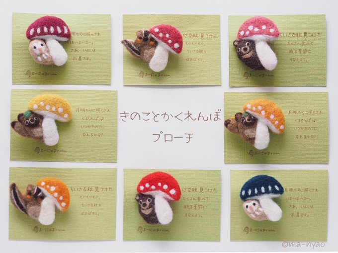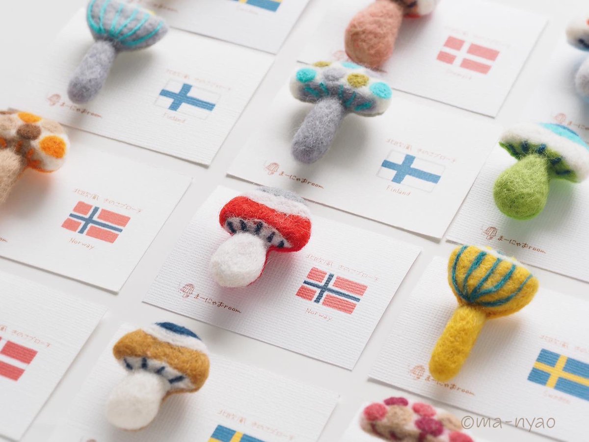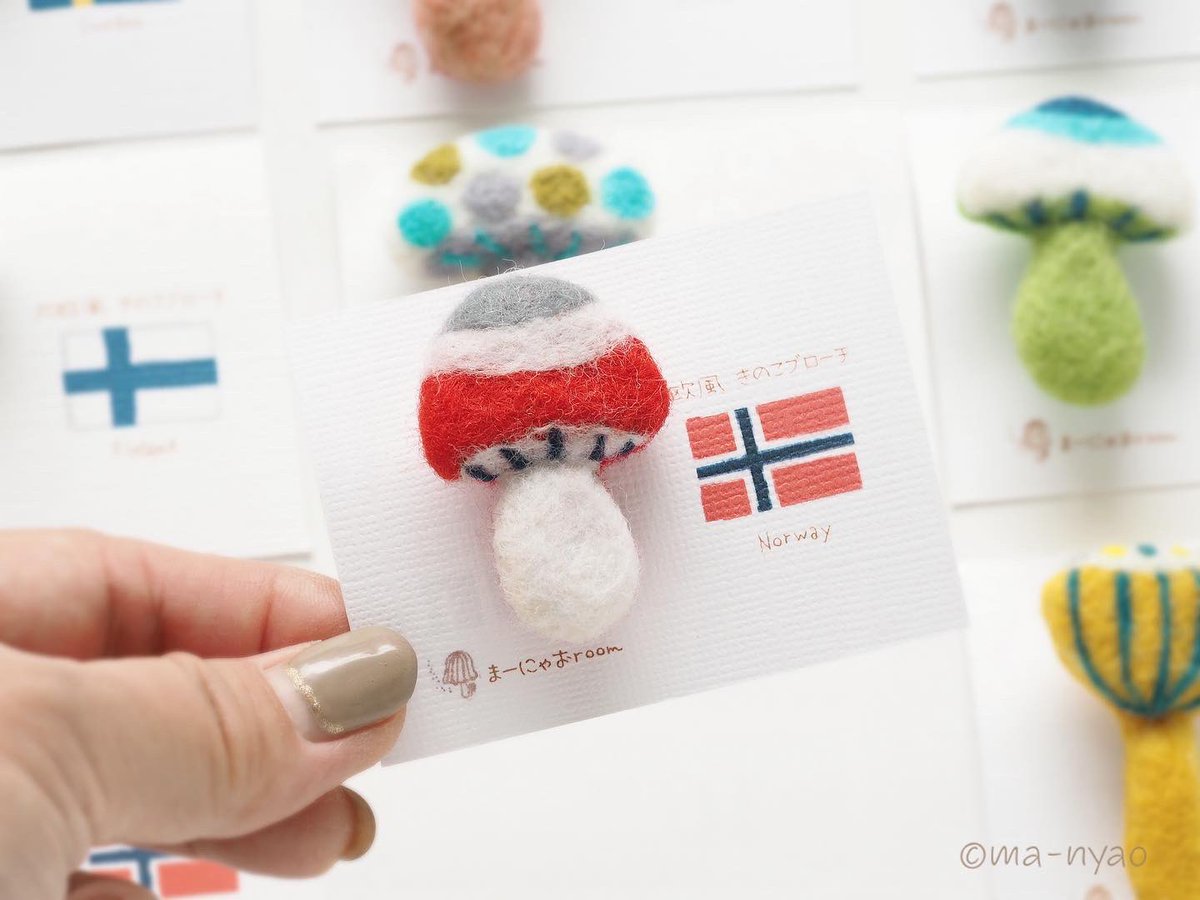 \ 上カラキノコブローチ𖤣𖥣𖤥 / この名前を聞いて…見て、 あ!そういうことなんですね! という反応いただけると、 毎回とても嬉しくなります。 そうなんです!上から…なんです♪ ヨコハマに向けて、 ちょい足ししました♪ #羊毛フェルト #きのこ #ヨコハマきのこ大祭