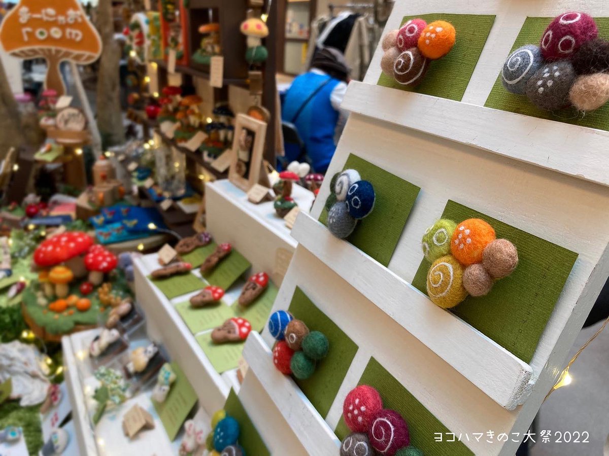 \ ヨコハマできのこ曜日𖥣𖤣𖤥 / たくさんのきのこ好きさんに 楽しんでもらっています。 目指して来てくださったり、 偶然通りかかって 見つけてくださったり… 今日もそんな素敵な出会いが ありますように。 17:30まで開催してますよー。 #羊毛フェルト #きのこ #ヨコハマきのこ大祭
