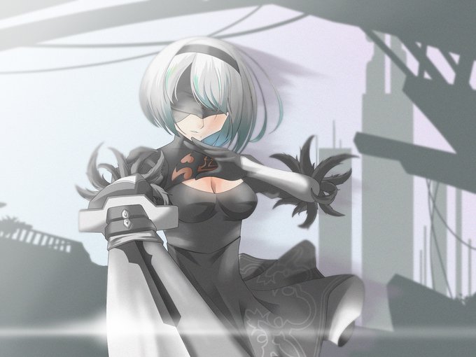 NieR:Automata 2B 模写 CGっぽく描けたと思います! 髪が特に難しかった #NieRAutomata #ニーアオートマタ #2B #ヨルハ二号B型 #模写 #眼帯無し #絵描きさんと繋がりたい