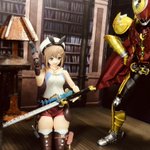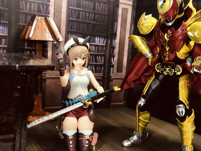 #夜のフィギュア撮影会 テーマ「鉄」 錬金術で作り出した鉄を使い武器の強化をするライザ 「カンカン叩くよ!」 #ライザのアトリエ #ライザリン・シュタウト #ようこそライザ #仮面ライダーキバ #エンペラーフォーム #figma写真部 #フィギュアーツ写真部