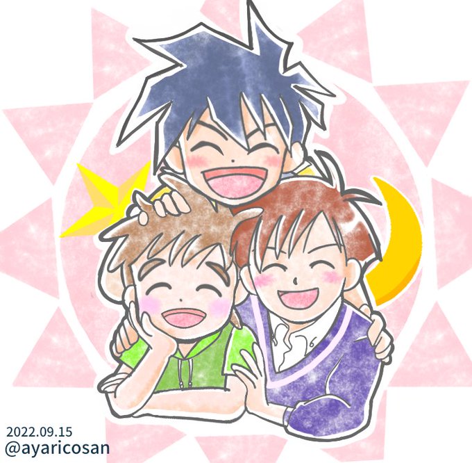 以前ゆめこさん(@prista_yumeco)が作られた素敵ストラップ💕どうしても描きたくなって描いちまったボーイズバージョン。勝手にスンマセン💦 もっと仁くんはガッツリ抱きしめてるイメージだったけどそれだと吼児が仁くんの肘掛けになっちまったんよ…。 #ライジンオー #ファンアート twitter.com/prista_yumeco/…