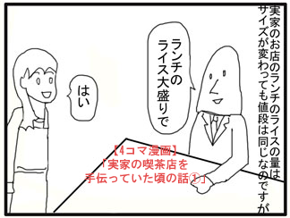 実家の喫茶店を手伝っていた頃の話① (4コマ漫画) ランチのライスの量についての 4コマ漫画です。 お客様は覆面で登場しています。 ブログ更新 「鈴木さんちの4コマ漫画」 kimamas.com/post-6373/ #漫画が読めるハッシュタグ #4コマ漫画 #漫画 #喫茶店 #ランチ #イラスト #ライス