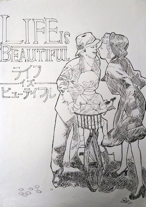 初めて挑戦した映画の模写を発見。 戦争映画だけど、一度はみんなに観てほしい📽 ボールペンで線と陰影を意識して描いた🎨🖌 自転車を描くって、難しい!! #イラスト #模写 #ボールペン画 #映画 #戦争映画 #ライフ・イズ・ビューティフル #イラスト好きさんと繋がりたい #絵描きさんと繋がりたい