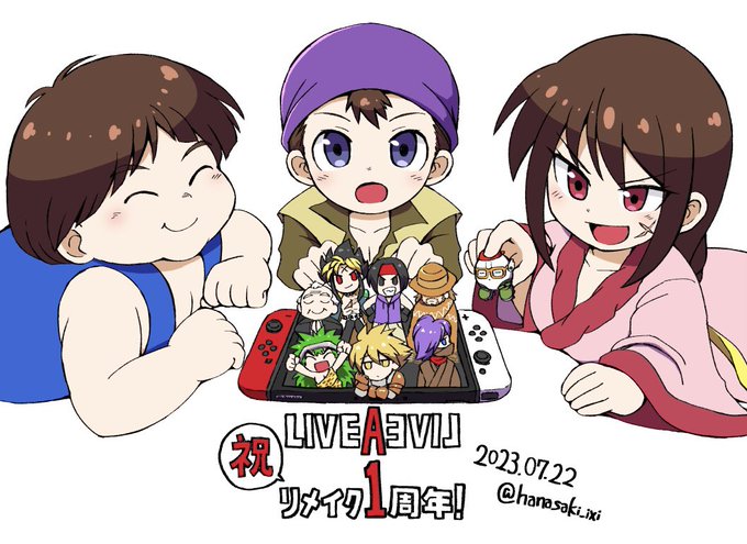 あ、あ、あいい〜ッ!! ライブアライブリメイク一周年おめでとり〜!!🎉(過去絵ですまぬm(_ _)m) 皆の者、宴の準備じゃー!! #ライブアライブ #LIVEALIVE #ライブアライブリメイク