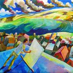 『スカイフィッシュの群れを見上げて』 #空想絵画物語 #illustration #art #paint #fantasyart #picture #droing #sketch #livepaint #イラスト #ライブペイント #絵 #スケッチブック #絵描きさんと繋がりたい #イラスト好きさんと繋がりたい