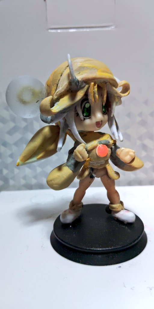 おはようございます、鉄筋です。 昨夜は連投失礼しました。 レジン工作が楽しくて、つい… レジンかんざしを磨きました。 半球体同士合わせめの凸凹削って研磨して あと、袖を整えて 腕を少し伸ばし全体のスケールに 合う腕にしました。 #セイバーマリオネット #ライム